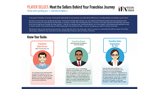 IFA wants to help you get started on your journey – and be with you every step of the way. Use this resource to understand the different types of franchise salespeople, questions to ask, and how to access free IFA tools to help you win at Finding a Franchise.